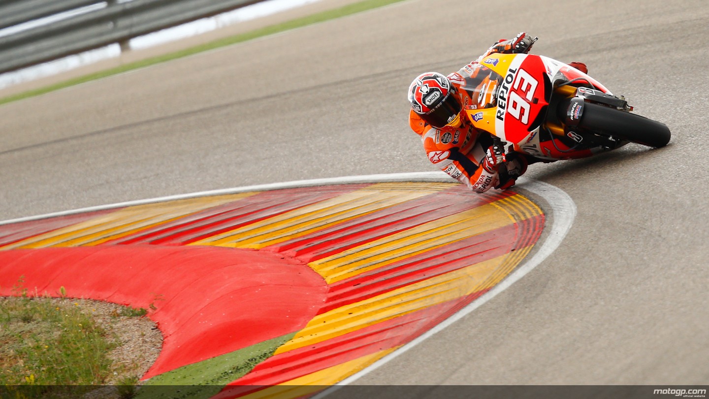 Malgré une chute dans son dernier tour de la séance des qualifications, Marc Marquez a décroché la pole-position pour le Grand Prix MotoGP d’Aragon réalisant un temps de référence de 1’46″635. Marc Marquez a devancé son compatriote Jorge Lorenzo (Yamaha) et l’italien Andrea Iannone (Ducati). L’italien Valentino Rossi, actuel leader du championnat du monde, partira en deuxième ligne derrière Pol Espargaro (Yamaha) et Dani Pedrosa (Honda). Bref, les deux espagnols Marc Márquez et Jorge Lorenzo ont survolé les qualifications au MotorLand Aragón.