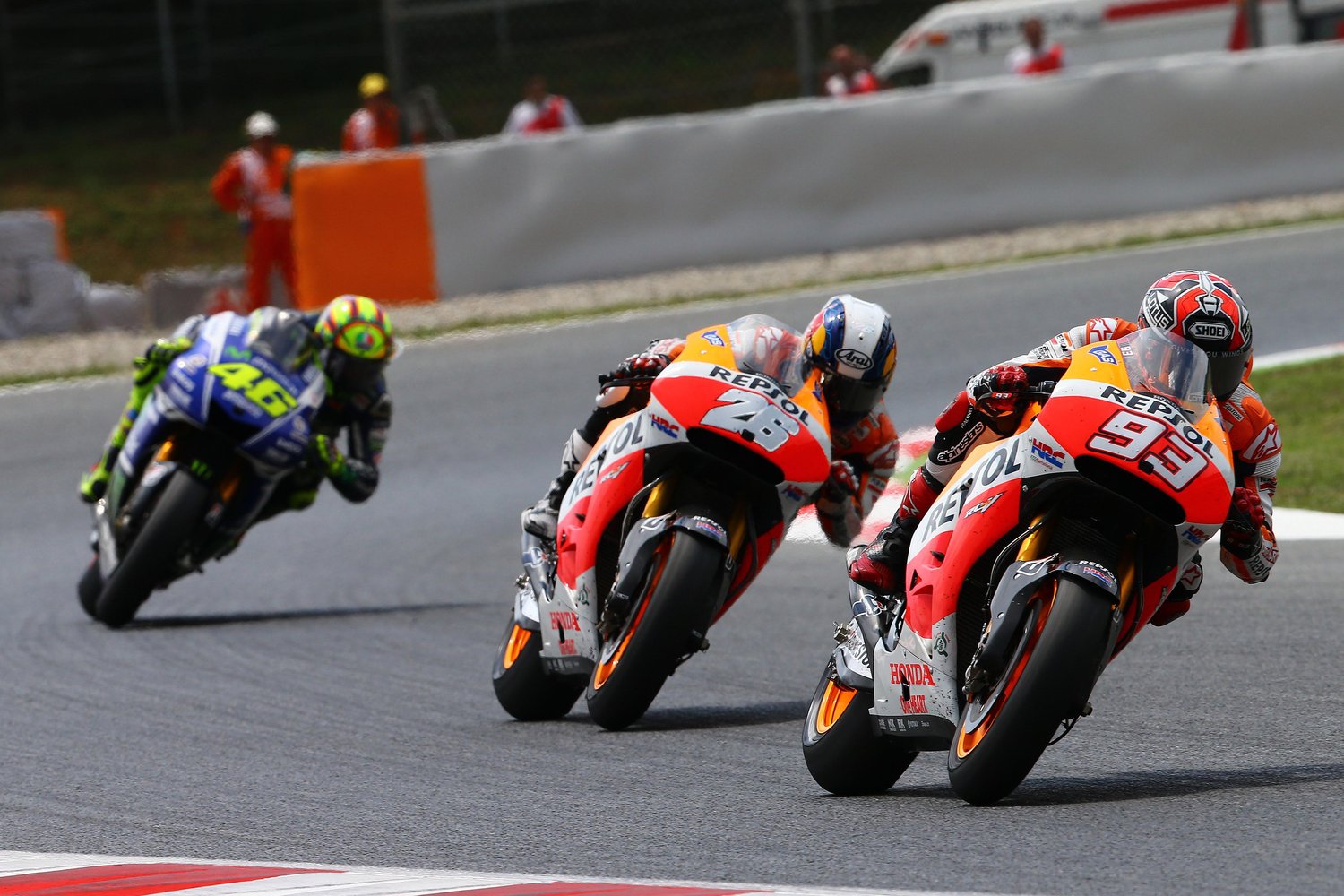 Pour le Grand Prix MotoGP de Catalogne, l’espagnol Marc Marquez (Honda HRC) retrouve sa pole-position devant son compatriote Jorge Lorenzo (Yamaha Factory). Les deux pilotes, étant sur leur terre, devraient partir de la première ligne de la grille de départ en compagnie de Dani Pedrosa (Honda HRC), originaire de Barcelone et qui retrouve également son public sur le circuit de Montmelo.