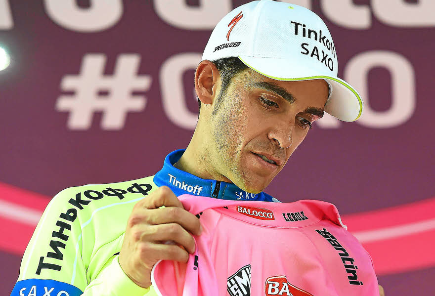 Alberto Contador, souffrant d’une luxation, porte le maillot rose depuis mercredi, il a tenté de poursuivre la course avec un bandage pour soutenir le bras. Selon sa publication Tweeter vendredi dernier.