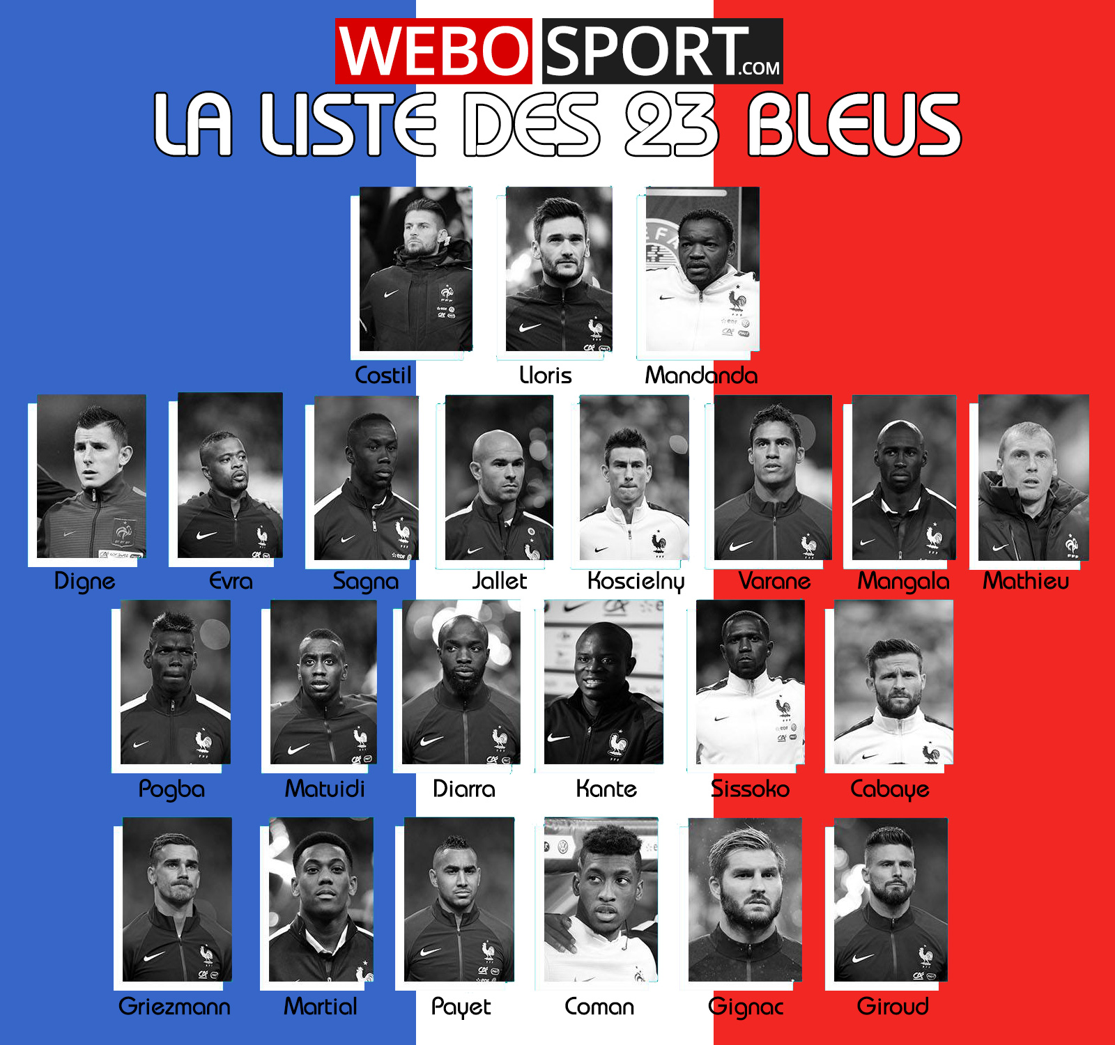 Attaquants : Antoine Griezmann, Dimitri Payet, Anthony Martial, Kingsley Coman, Olivier Giroud, André-Pierre Gignac